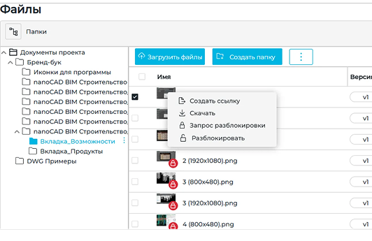 Доступ к проектной информации, хранящийся на сервисе, осуществляется непосредственно из интерфейса Платформы nanoCAD