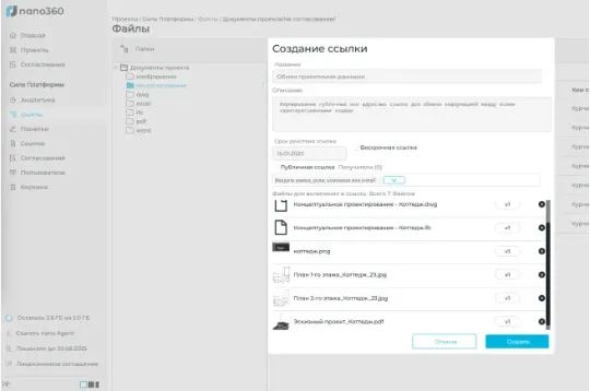 Формирование публичных или адресных ссылок для обмена информацией между всеми заинтересованными лицами