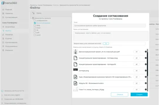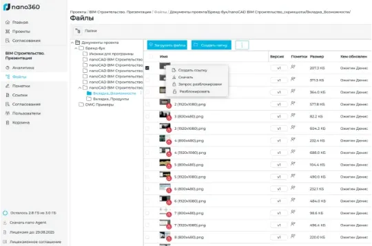 Доступ к проектной информации, хранящийся на сервисе, осуществляется непосредственно из интерфейса Платформы nanoCAD