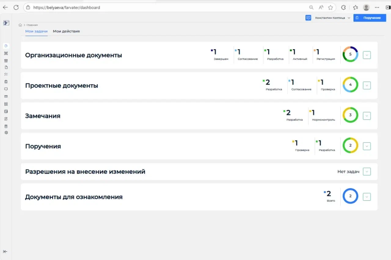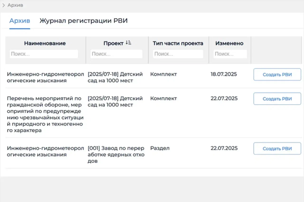 В системе реализованы процессы, необходимые проектной организации для подготовки, выпуска, хранения в электронном архиве проектно-сметной документации, отчетов по результатам инженерных изысканий и многих других видов документов