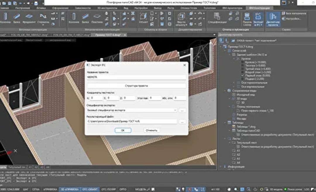 Экспорт данных в сторонние программные комплексы (SCAD/ЛИРА/ЛИРА САПР и т. д.) и внешние форматы (IFC, 3D PDF и др.)