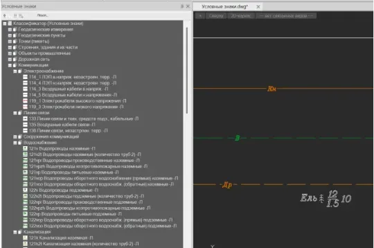 Встроенная библиотека условных знаков с возможностью создания пользовательских библиотек, добавления собственных точечных и линейных знаков, редактирования существующих обозначений в соответствии со стандартами организации