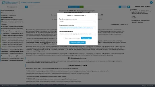 Функционал модулей NSR Specification настроен для работы с текстом общероссийских нормативных документов, возможна донастройка под отраслевые стандарты
